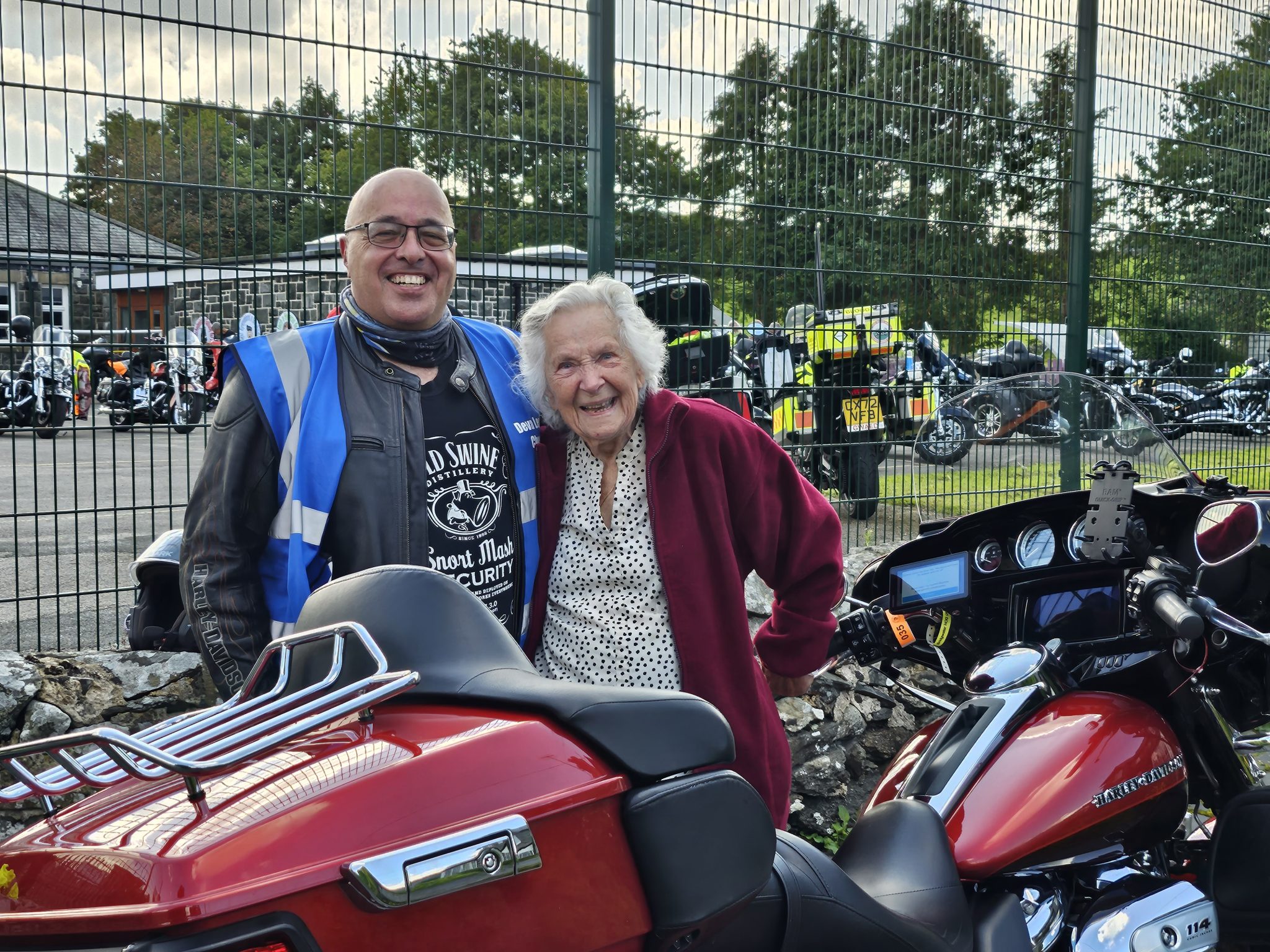 The picture below has a story (clicking on it opens the album): Edna, is 98 years young. When she heard from the school that we were dropping in to this beautiful little North Wales village, she got so excited! Why, because as a young girl she used to love to ride pillion on her Dad’s motorbikes. He rode Nortons and many other bikes but never Harleys – but we’ll forgive him as Edna was a joy! She told us stories, entertained us with anecdotes, welcomed us with open arms and even invited us back (…she may get her wish!). Edna was a gem, and we couldn’t resist putting her front and centre of our Saturday Gallery!